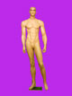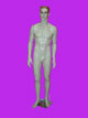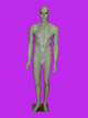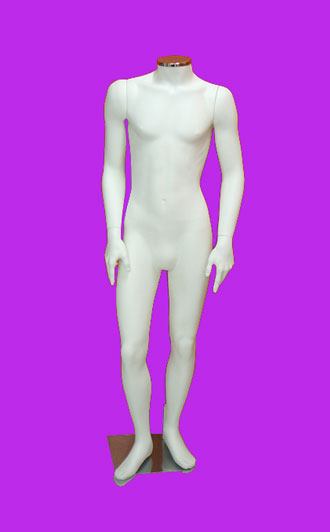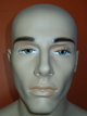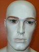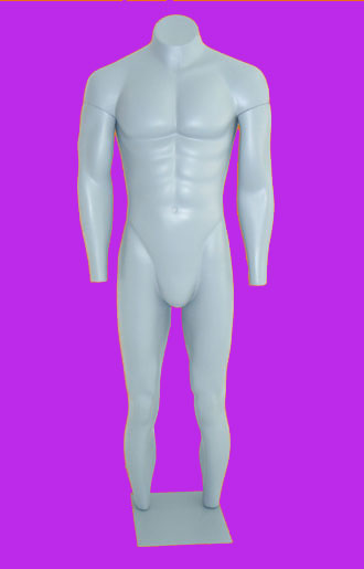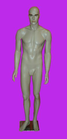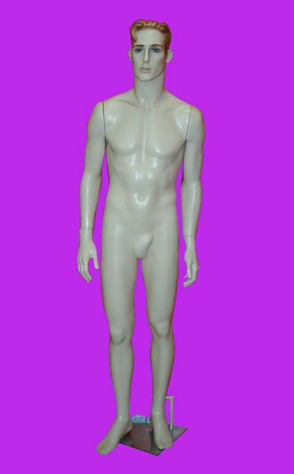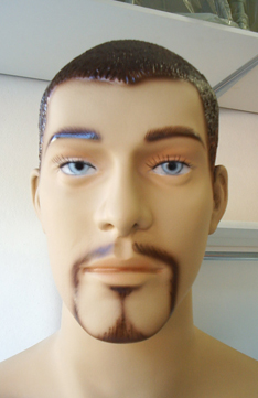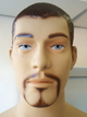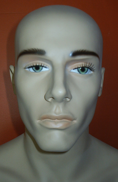 Manequim masculino com cabeça maquiada Pele escura perna esquerda para frente